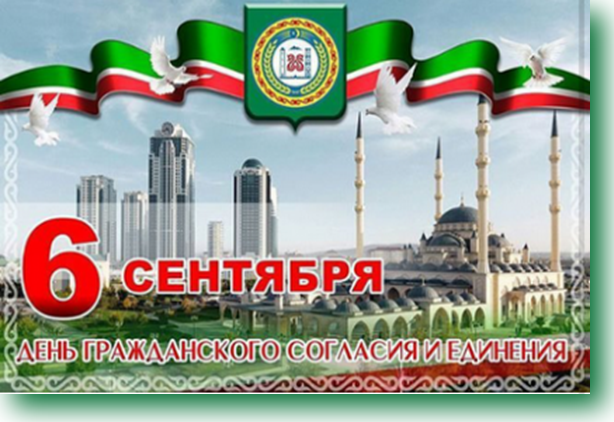 06.09.2019День республики – один из самых значимых и молодых праздников нашей республики. Этот праздник неразрывно связан с именем первого Президента Чеченской Республики, Героя России Ахмат-Хаджи Кадырова. День гражданского согласия и примирения, учрежденный в 2002 году Указом Ахмат-Хаджи Кадырова, символизирует сплоченность всех народностей, проживающих на территории республики.