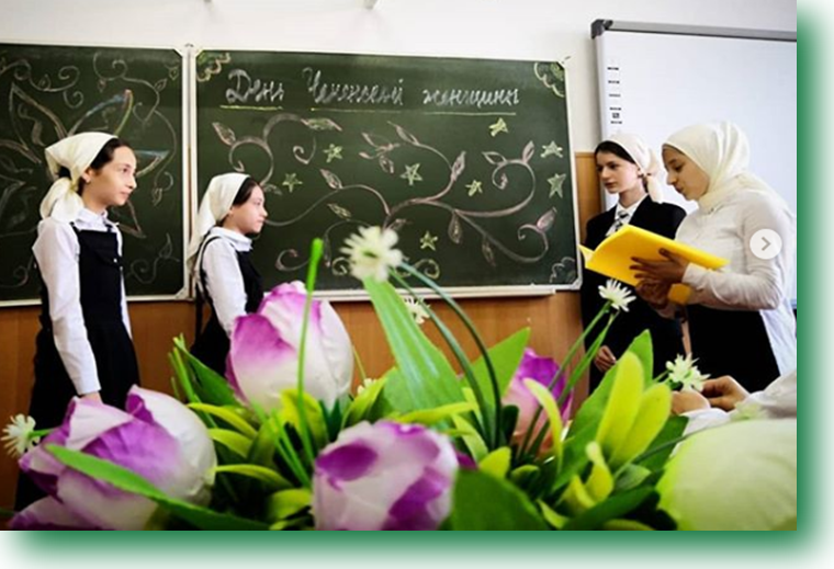 Классные руководители 7 "А" и 7 "В" классов Минкаилова З. А., и Газиева М. Х., провели классные часы ко Дню чеченской женщины