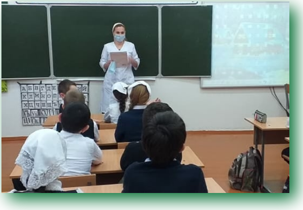 В целях профилактики вирусных заболеваний, медицинский работник нашей школы Межиева Л. У., провела беседу с учащимися на тему "Коронавирусы — это семейство вирусов, которые поражают человека и животных".