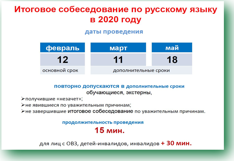 Расписание итогового собеседования по русскому языку в 9 классах.