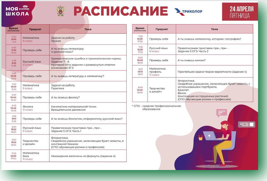 Расписание третьего дня трансляции нового телевизионного образовательного проекта Минпросвещения России «МОЯ ШКОЛА в online».