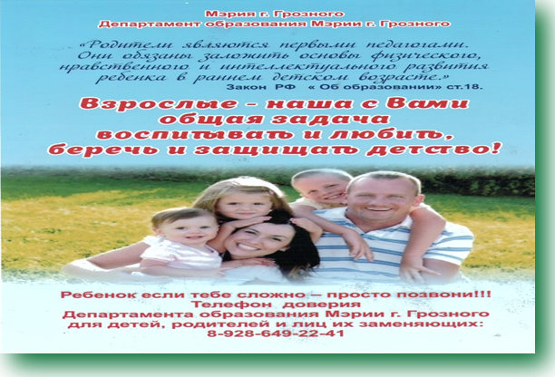 Ребенок если тебе сложно - просто позвони!!! Телефон доверия Департамента образования Мэрии г.Грозного для детей, родителей и лиц их заменяющих: 8-928-649-22-41