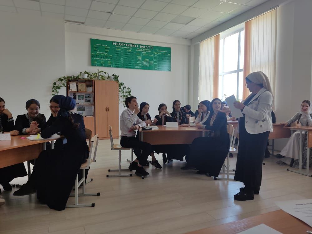 26.04.2022Нохчийн меттан Денна лерина цхьаьнакхетар д1адаьхьира ворх1алг1ачу классашна йукьахь 21_чу апрелехь. "Ловзар_Къийсам" ц1е йолчу оцу цхьаьнакхетарехь дешархоша дийцира ненан меттан хазаллех, иза хьалдолуш хиларх, къоман дахаран хазна хилар.Дешархой шина тобане бекъа а белла, д1аболийра шайн къовсам. Программина йукъадог1у хаттарш дара халкъан тидамех, х1етал_металех, кицанех, нохчийн маттах хастаме дешнех. "Барт"а, "Машар"а ц1е йолчу тобанаша д1айийшира стихаш, лекхира нохчийн эшарш, гайтира халкъан хелхарш. Тергамхоша мах хадийра. "Машар" тобано 1_ра меттиг йаьккхира. Х1окху цхьаьнакхетаран коьрта 1алашо_нохчийн матте лерам, иза 1амор, бовзар. Нохчийн меттан а, литературан а хьехархо Бораева Тоита Кахимовна.