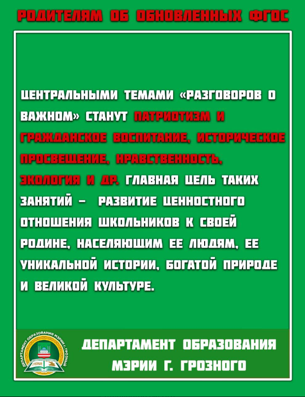 Департамент образования Мэрии города Грозного разработал методическое пособие для родителей по самым актуальным вопросам введения обновленных федеральных государственных образовательных стандартов (ФГОС)