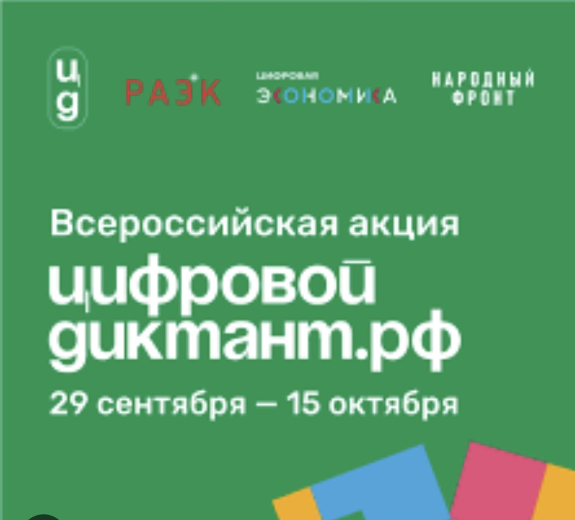 18.09.2023Минцифры России информирует о проведении в период с 29 сентября по 15 октября 2023 г. Всероссийской акции «Цифровой диктант». Акция проводится в сети «Интернет» на платформе Цифровой диктант.рф.