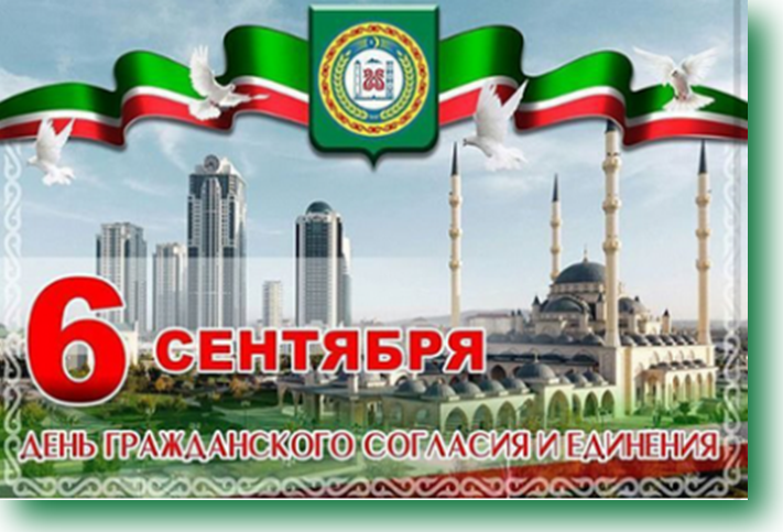 06.09.20206 сентября – День гражданского согласия и единения. Указ об учреждении праздника был подписан в 2002 году Главой Администрации Чеченской Республики Ахмат-Хаджи Кадыровым. Данный указ положил начало объединению и укреплению чеченского общества.
