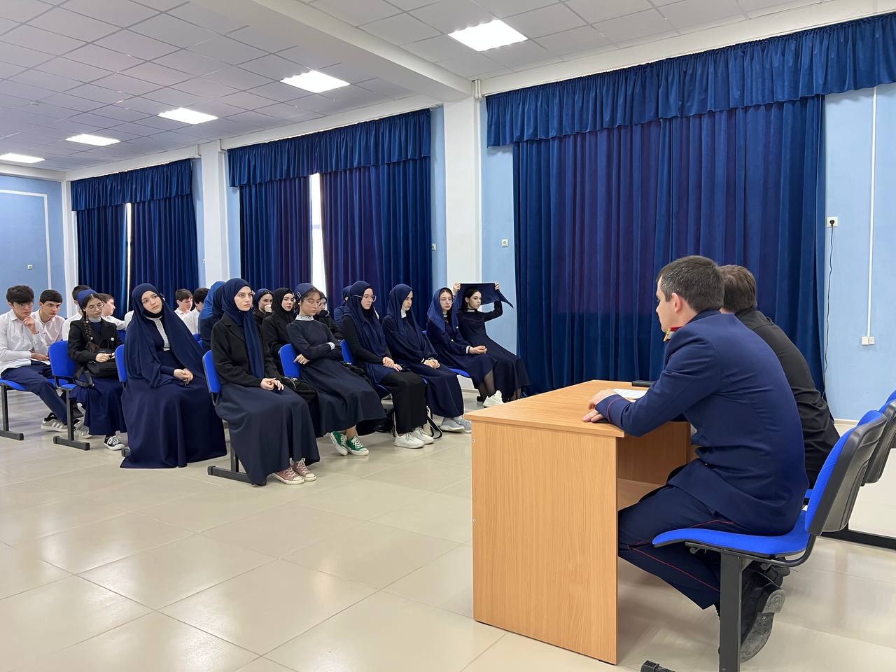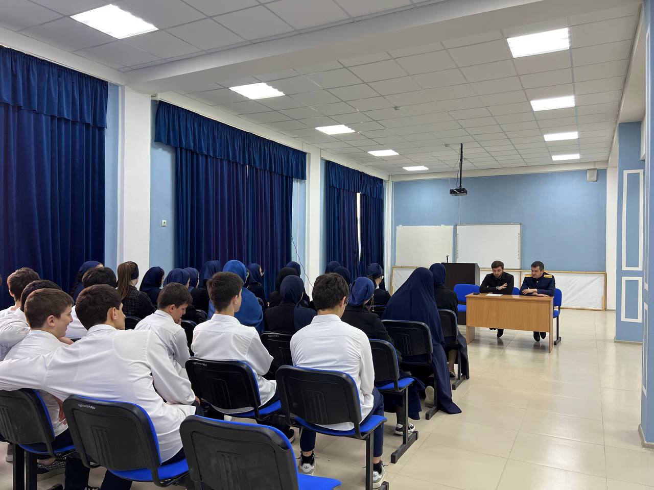 24.04.202425.04.2024г. Была проведена лекция с учащимися 8-10-х классов на тему:«Уголовное преследования за совершение преступлений экстремисткой террористической направленности, распространение экстремистских материалов социальных сетях».Лекцию проводил следователь по ОВД следственного отдела поВисаитовскому району г. Грозного СУ СК РФ по ЧР Бистаев А.А.