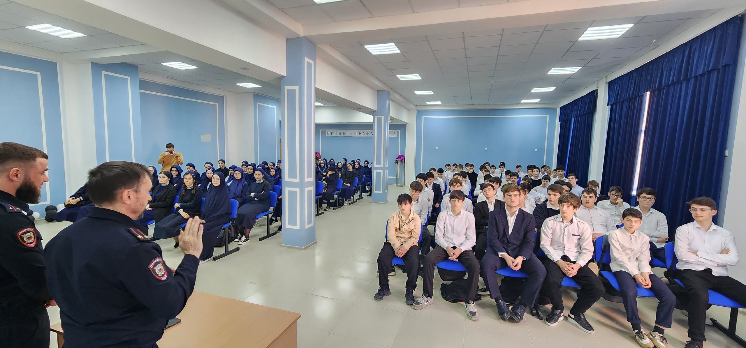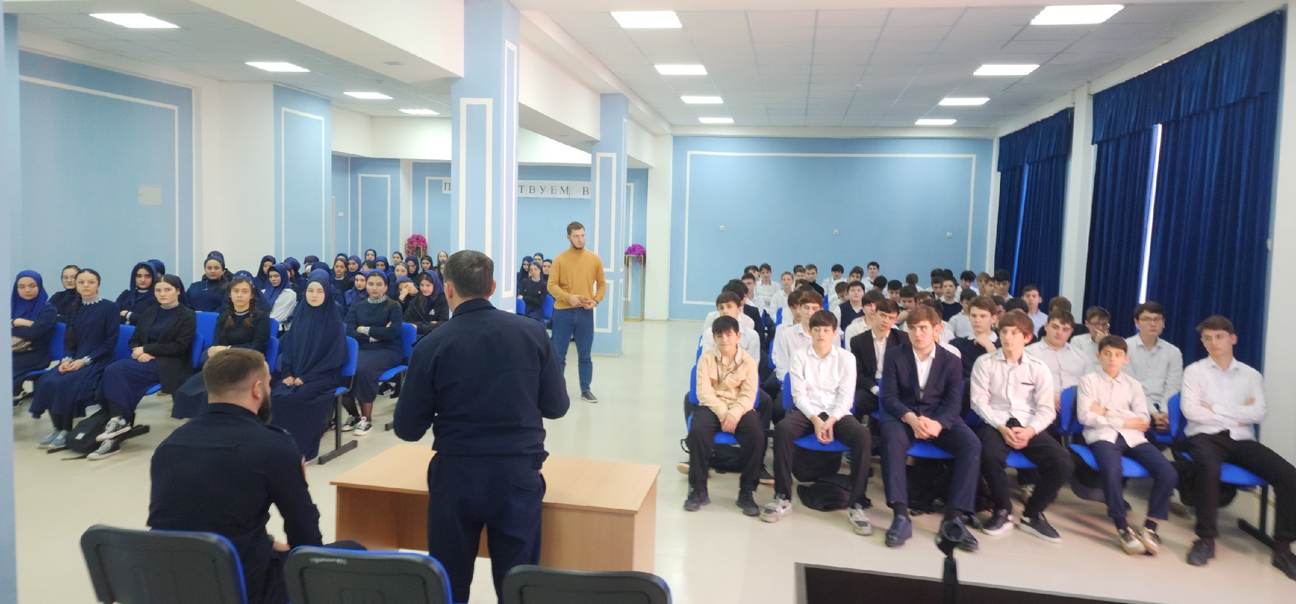 Начальник ПДН ОП 3 г. Грозного Алтамиров С. Провел профилактическую беседу с учащимися среднего и старшего звена нашей школы на темы: "Профилактика правонарушений, наркомании, алкоголизма и табакокурения"; "Безопасные каникулы".