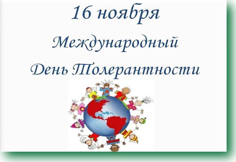 16.11.2017Международный день толерантности 16 ноября. Впервые о необходимости решения задачи толерантного воспитания и оглашения проблемы в общественности заговорили в международной организации ЮНЕСКО более чем 20 лет назад. На собрании, посвященном пятидесятилетию этой организации, был поднят вопрос о необходимости принятия Декларации принципов терпимости.