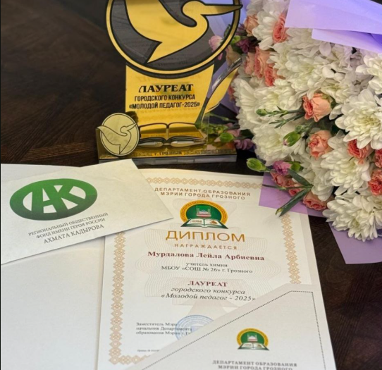 Поздравляем нашу звёздочку молодого учителя химии Мурдалову Лейлу Арбиевну Лауреат муниципального этапа Всероссийского конкурса "Молодой педагог-2025"