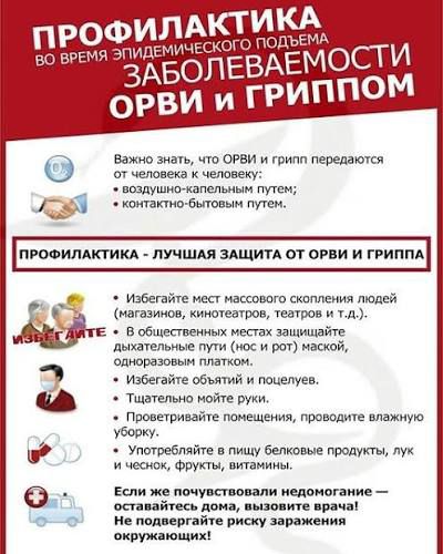 Мероприятия по профилактике гриппа и ОРВИ включают вакцинацию, изменения образа жизни, использование медикаментозных средств и санитарно-гигиенические меры. Лучший результат даёт сочетание разных мер защиты.