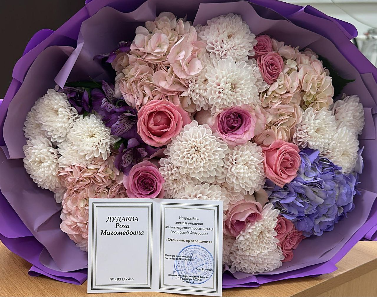 15.10.2025Дудаева Роза Магомедовна была отмечена знаком отличия "Отличник просвещения" Министерством просвещения РФ за выдающиеся успехи и профессионализм в сфере образования , что является признанием её значительных достижений и весомого вклада в образовательный процесс нашей страны.