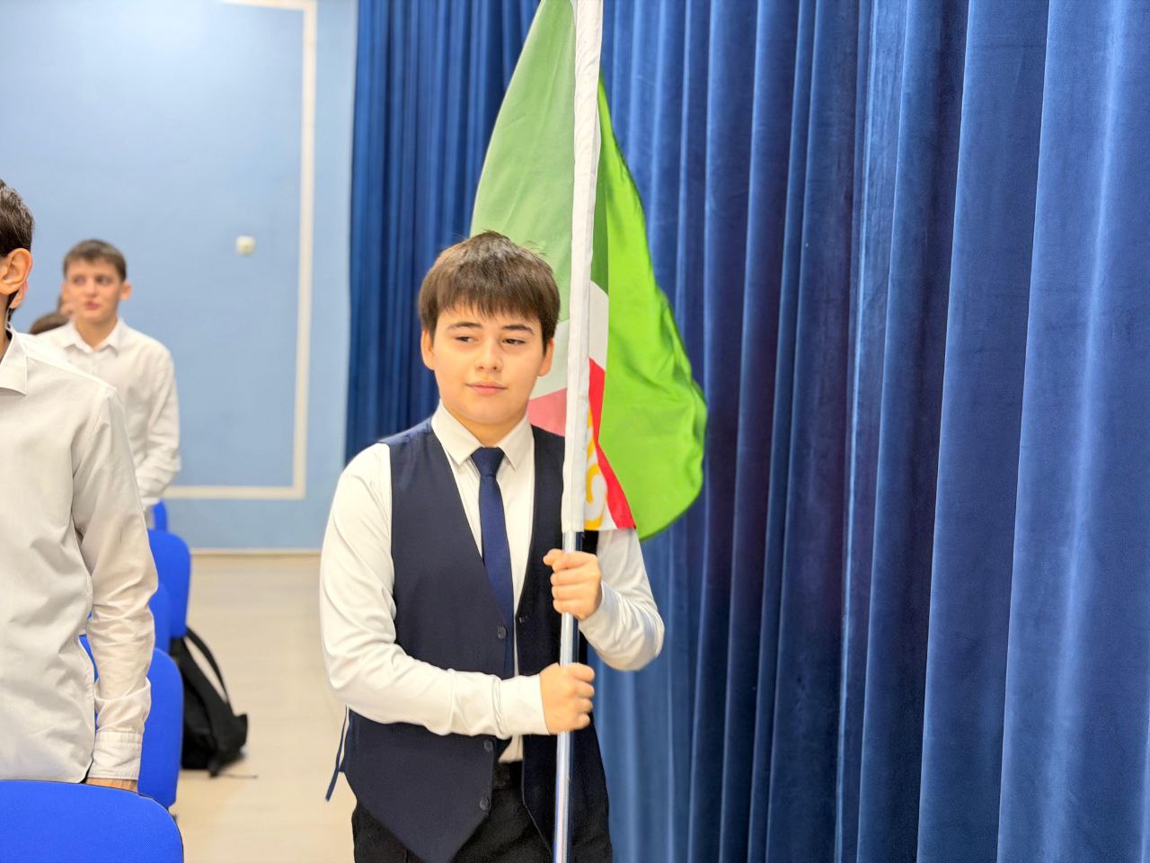 19.01.2026В нашей школе состоялась торжественная церемония поднятия государственных флагов Российской Федерации и Чеченской Республики. Мероприятие прошло с участием администрации школы, педагогов и обучающихся. Церемония направлена на воспитание патриотизма, уважения к государственным символам и формирование гражданской ответственности у подрастающего поколения.