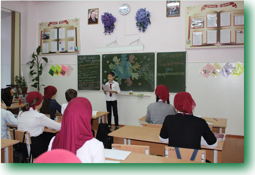 16.11.201816 ноября 2018 года в МБОУ «СОШ№26» г.Грозного были проведены интересные уроки с учащимися начальной школы, которые были посвящены Международному дню терпимости (толерантности).